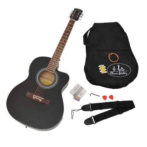 Ts-ideen 4570 Guitare folk électro-acoustique avec Micros 4 bandes EQ/Etui rembourré/Sangle/Corde/Diapason à bouche Noir: Ts-ideen 4570 Guitare folk